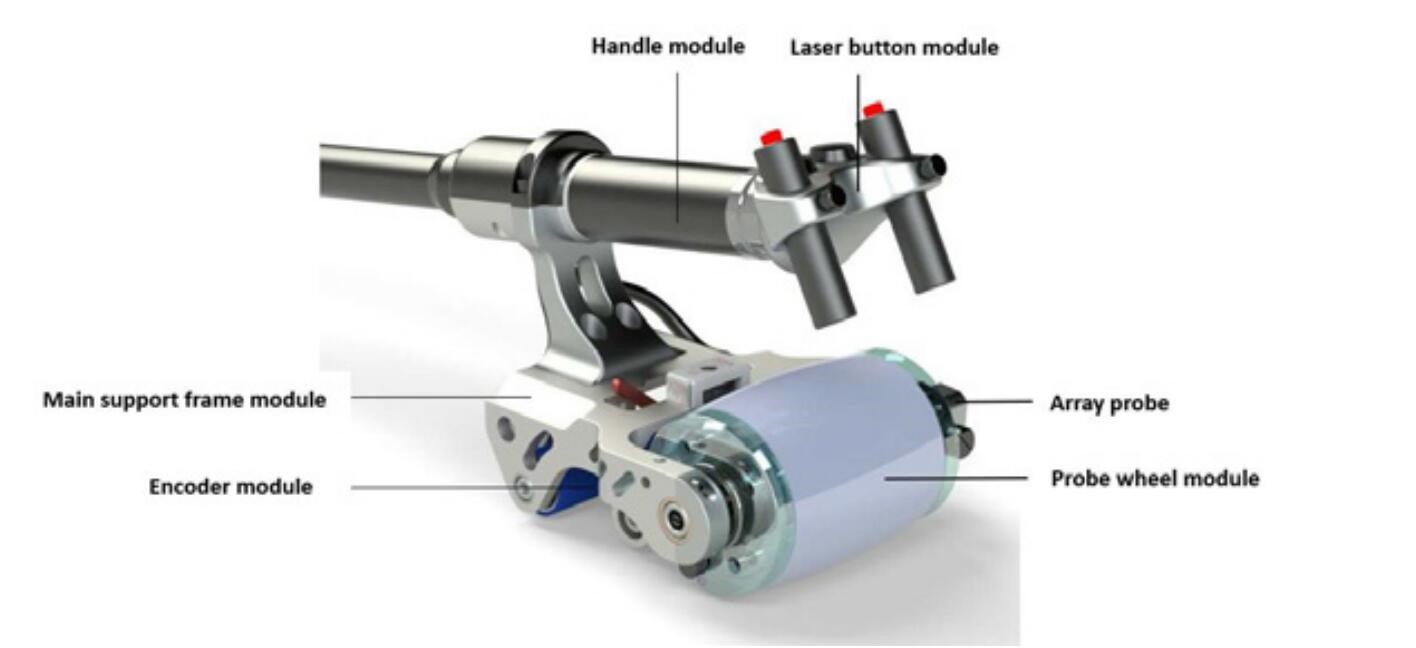 modules: array probe, probe wheel module, main support frame module, laser button